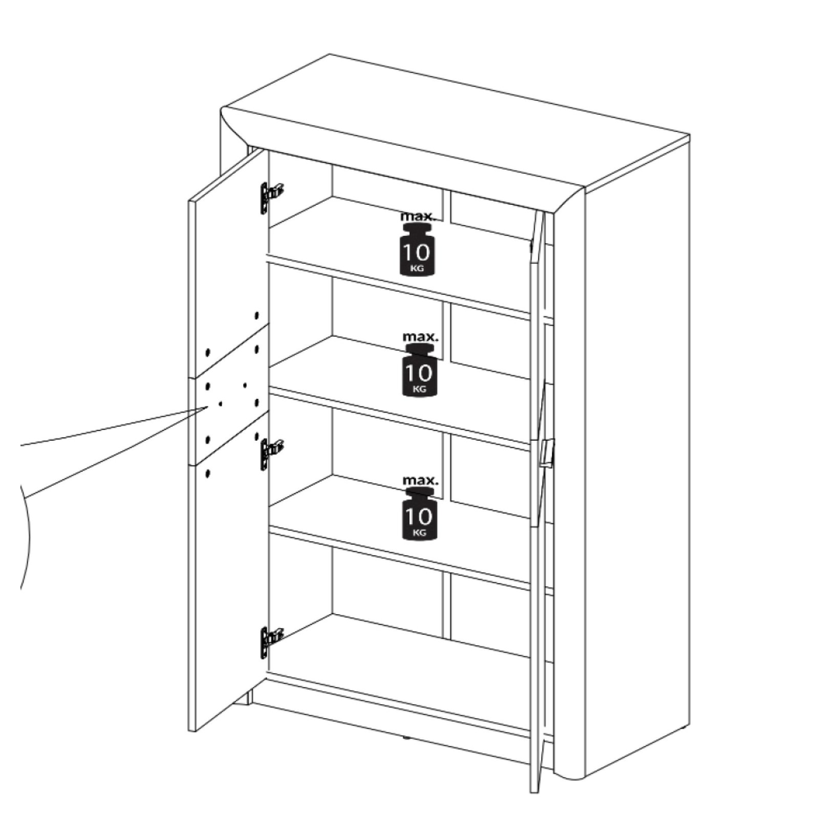 • Matmenys (aukštis/plotis/gylis): 133/92/43 cm.