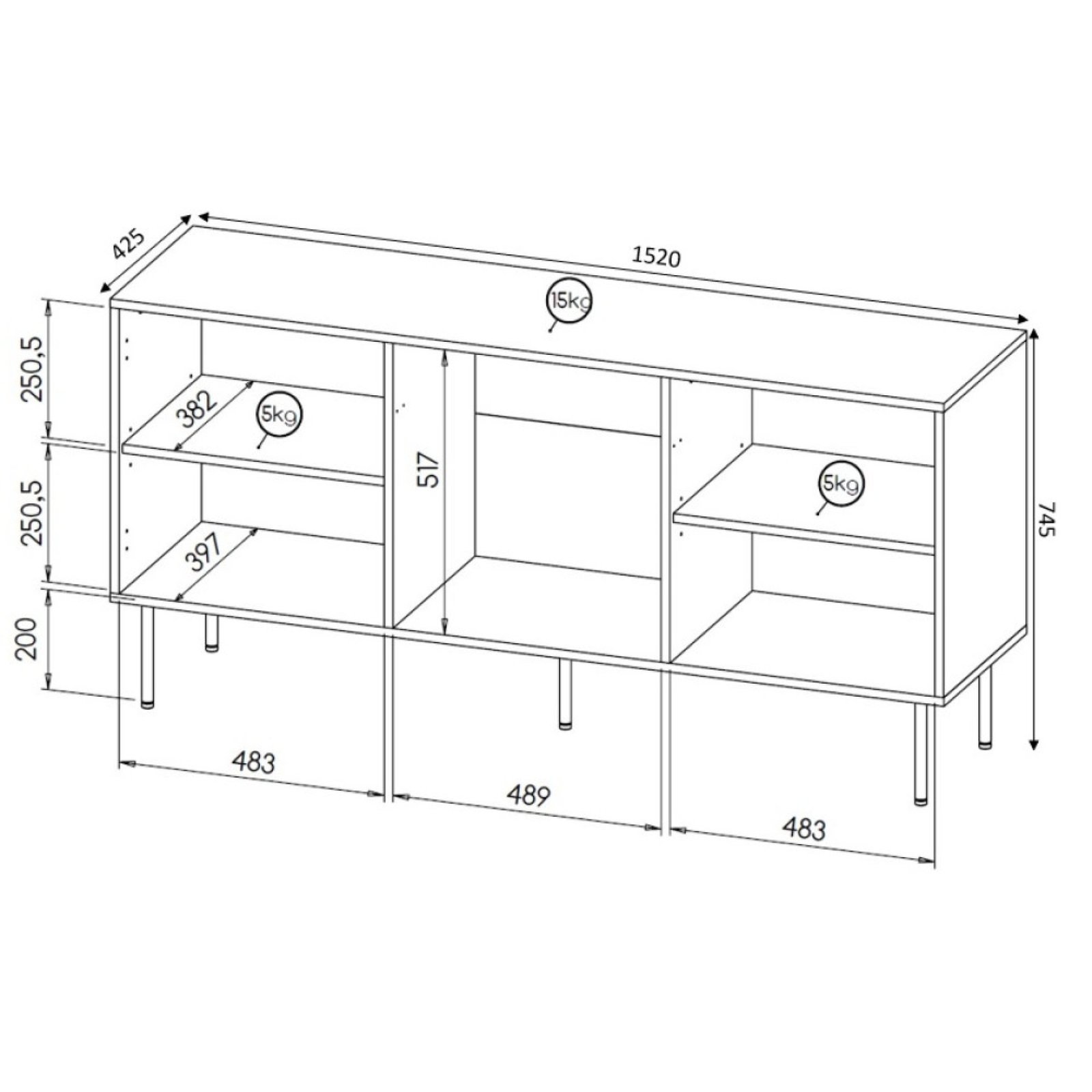 • Matmenys (ilgis/aukštis/gylis): 152/74,5/42 cm.