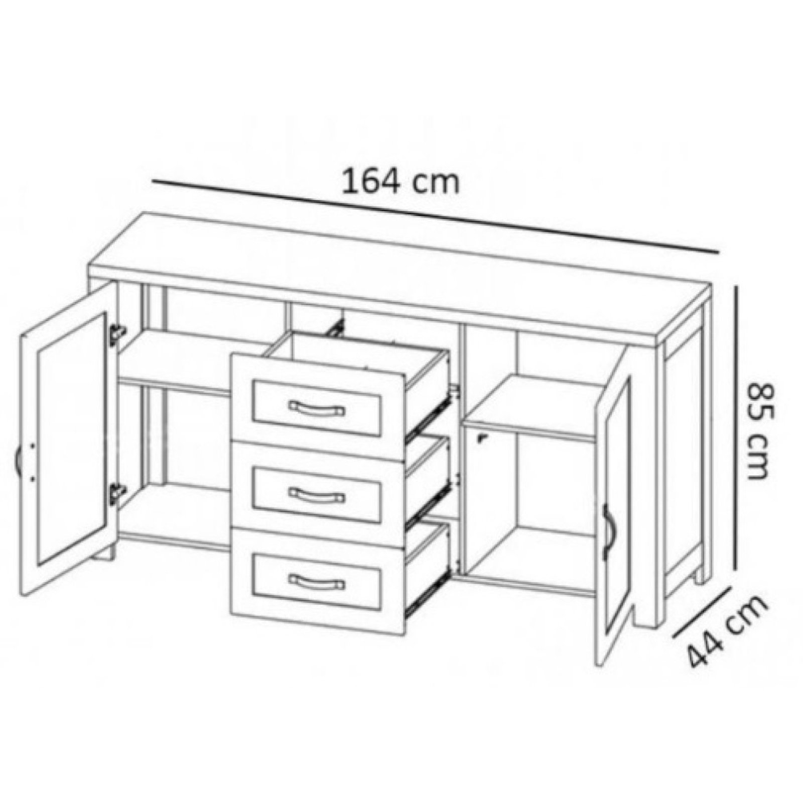 • Matmenys (plotis/aukštis/gylis): 164/85/44 cm.