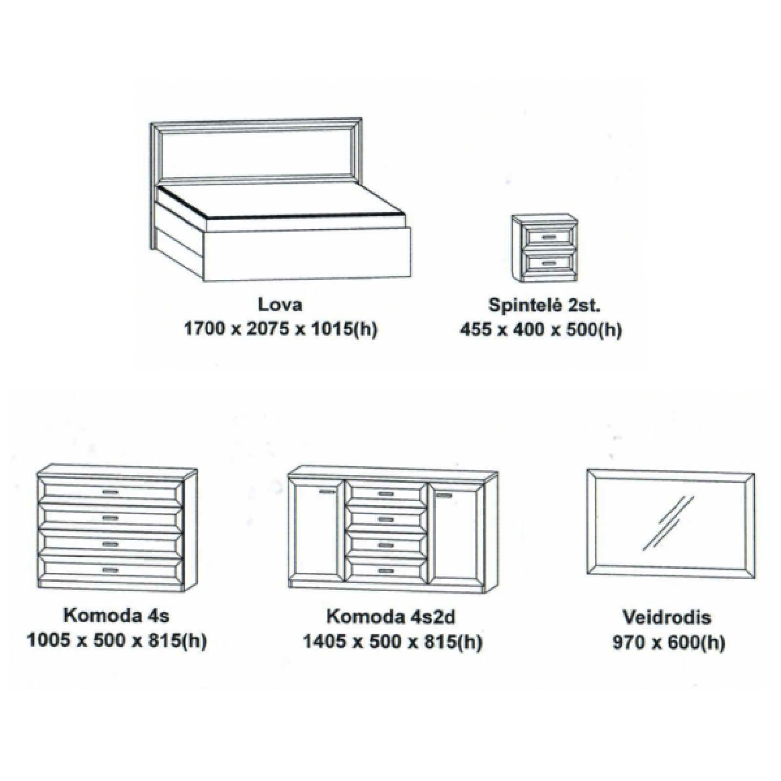 - Galima rinktis komodą iš 2 variantų – 4 st. ir 4 st./2d.